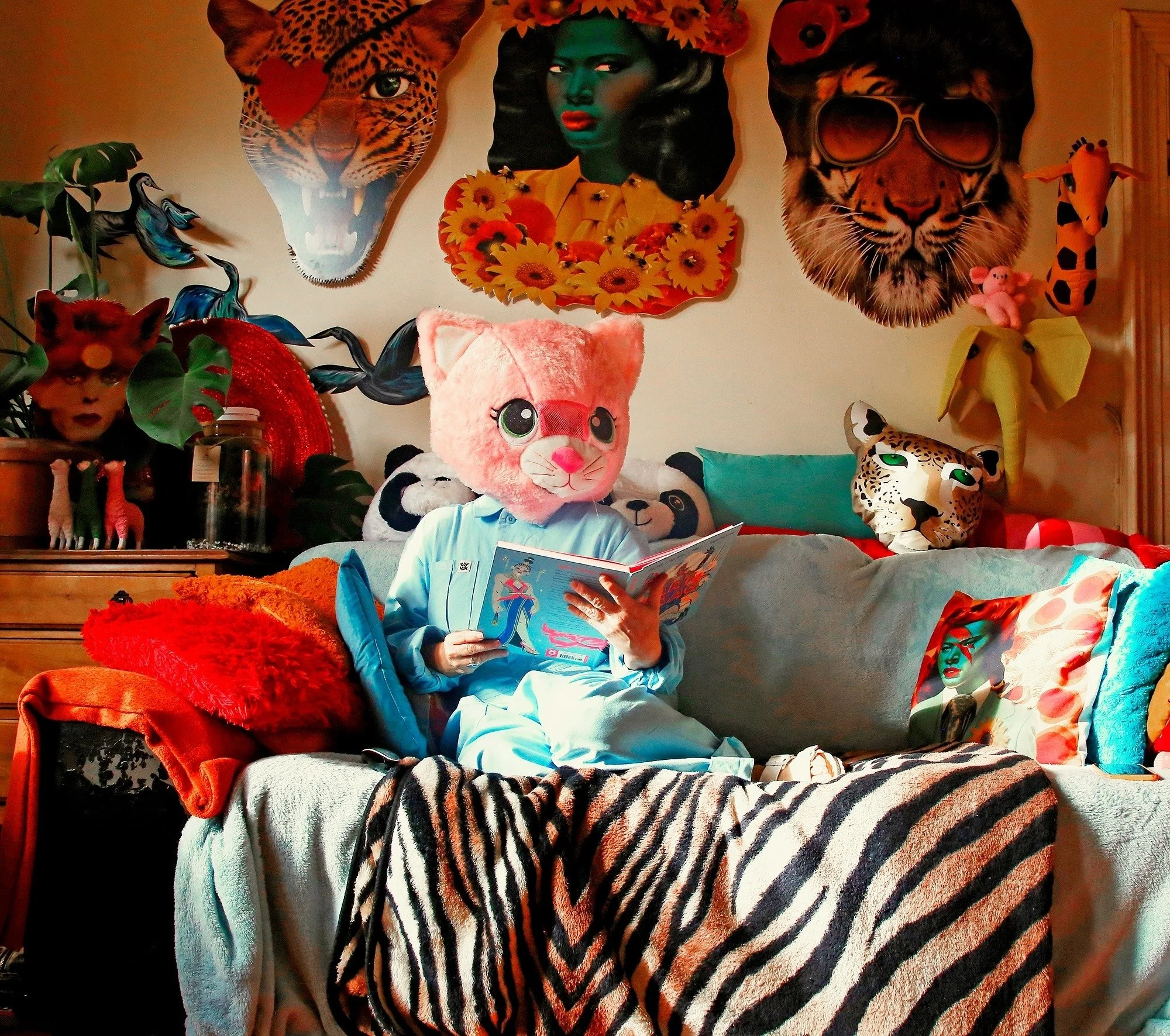 Like stepping through pages of dark faerie tales, trying on different heads for size. Imagery just as likely to be re-inventing a musician's creative identity, as adorning gallery walls in ornate frames; her work is part dreamlike Dali; part magic realism of Dahl; part homage to horror and all Bean. The line between this world and the one which Anna's creations inhabit is gossamer thin. Often using friends and family members in her lavish scenes, the images simultaneously invite and unnerve the viewer. Attention to detail, to time and period, lend the images authenticity, lavish costume, make-up and masks appeal to the extrovert and the introspect equally: perfectly easy to hide behind a mask. Anna's chimeric world has escaped the confines of the frame of late, to dance and move on the stage, in contemporary shows and festival settings. The garish sheen of Gothic horror/fantasy is unmistakably Anna Bean with a storyteller's hand she creates scenes that play on the irresistible power and infinite possibilities of transformation. You can be anything in here anything, anything at all. For centuries anthropomorphism has been captivating the minds of children and adults alike ever since the wolf leaped out of bed wearing grandma's nightdress and cap and gobbled the little girl up... Michelle Dee